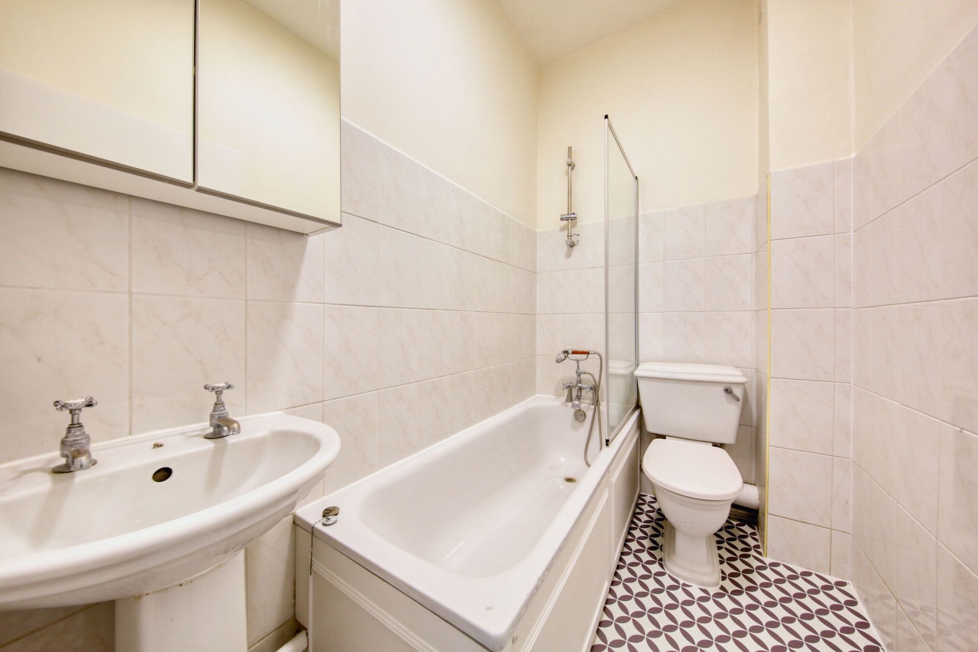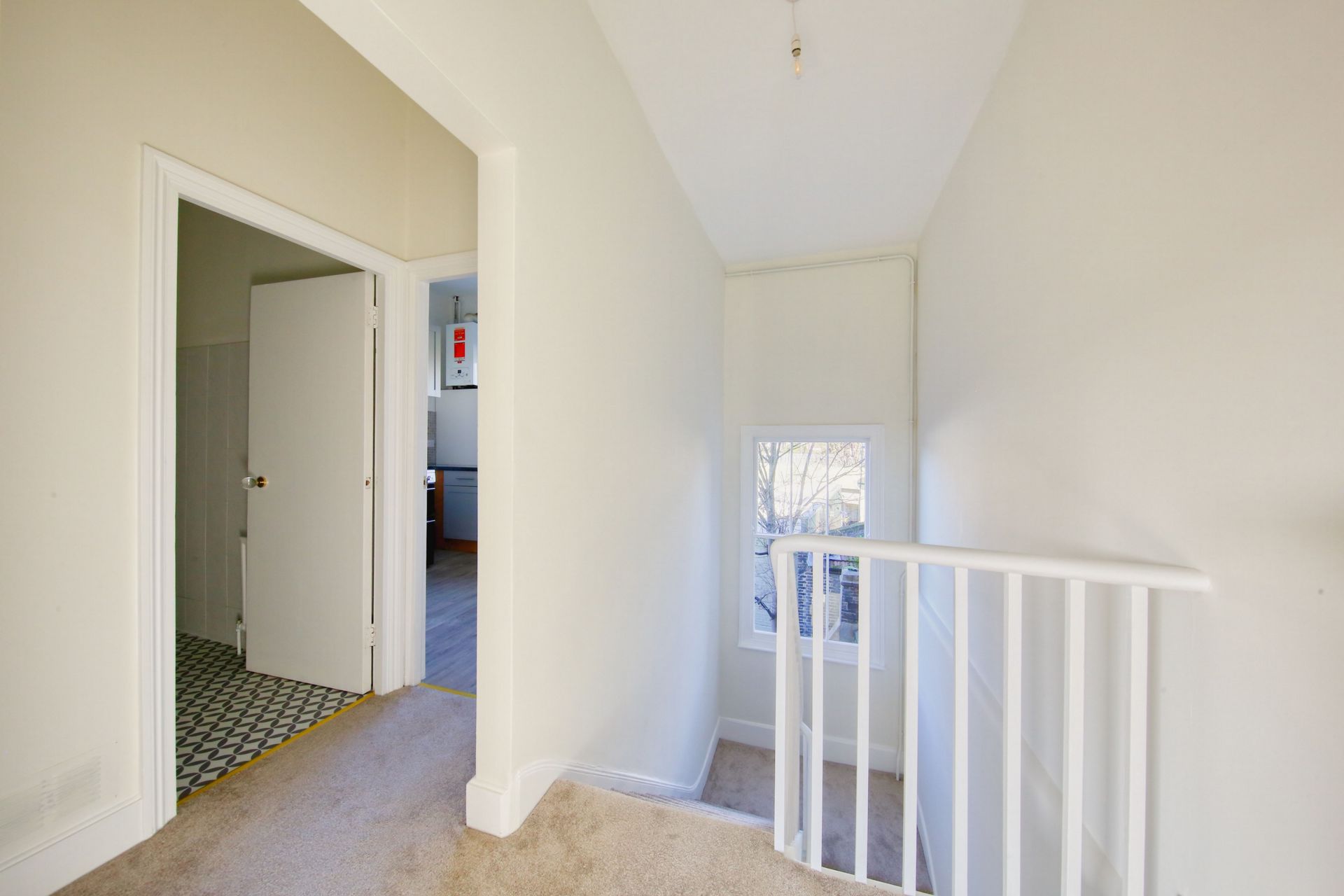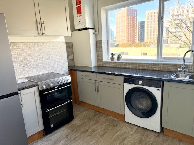 A recently refurbished split level flat of over 1000 sq/ft with a private entrance on Old York Road. The flat feels spacious and light, with very high ceilings and huge windows. It is currently laid out with two large double bedrooms and a further single, sitting room, bathroom, and kitchen.